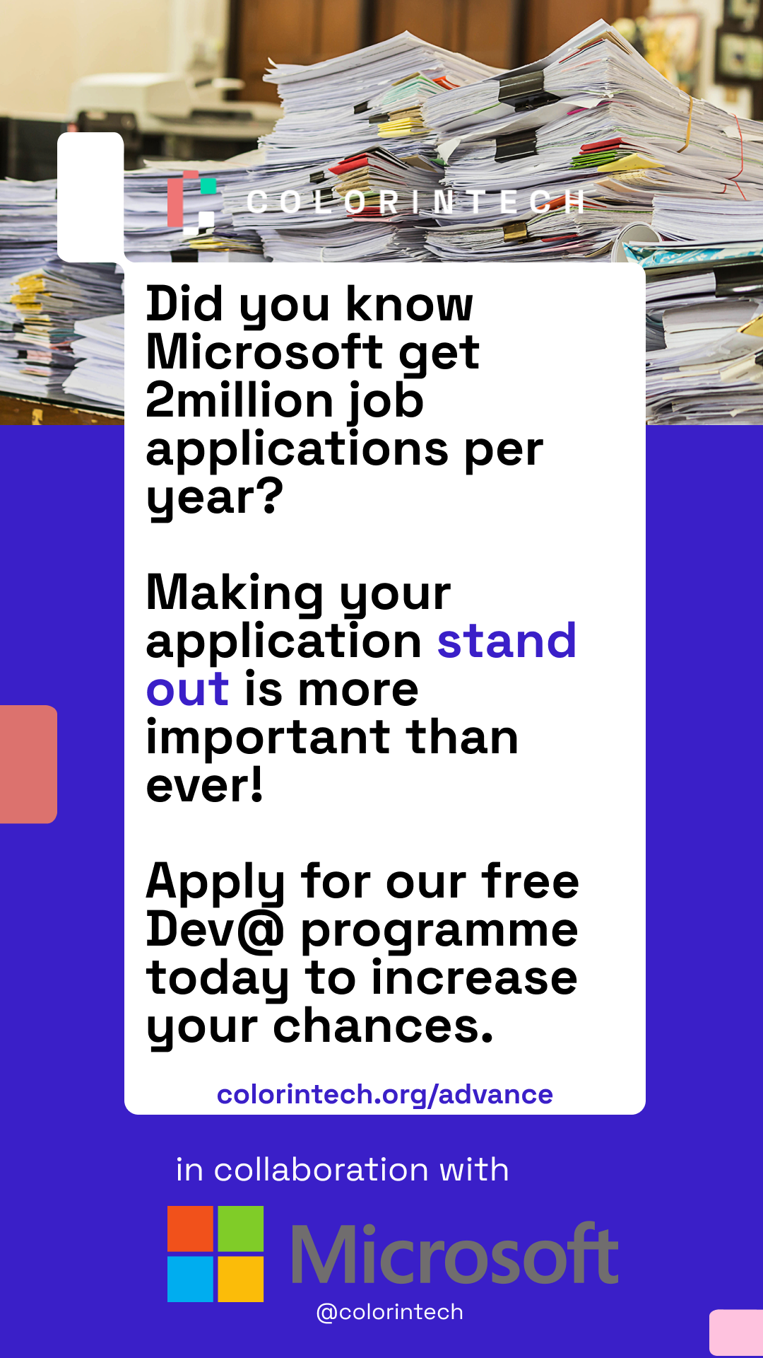 On 19 October, join us for Colorcode, an interactive tech day dedicated to inspiring young people to kickstart or fast-track their careers in tech with the help of tech giants.
