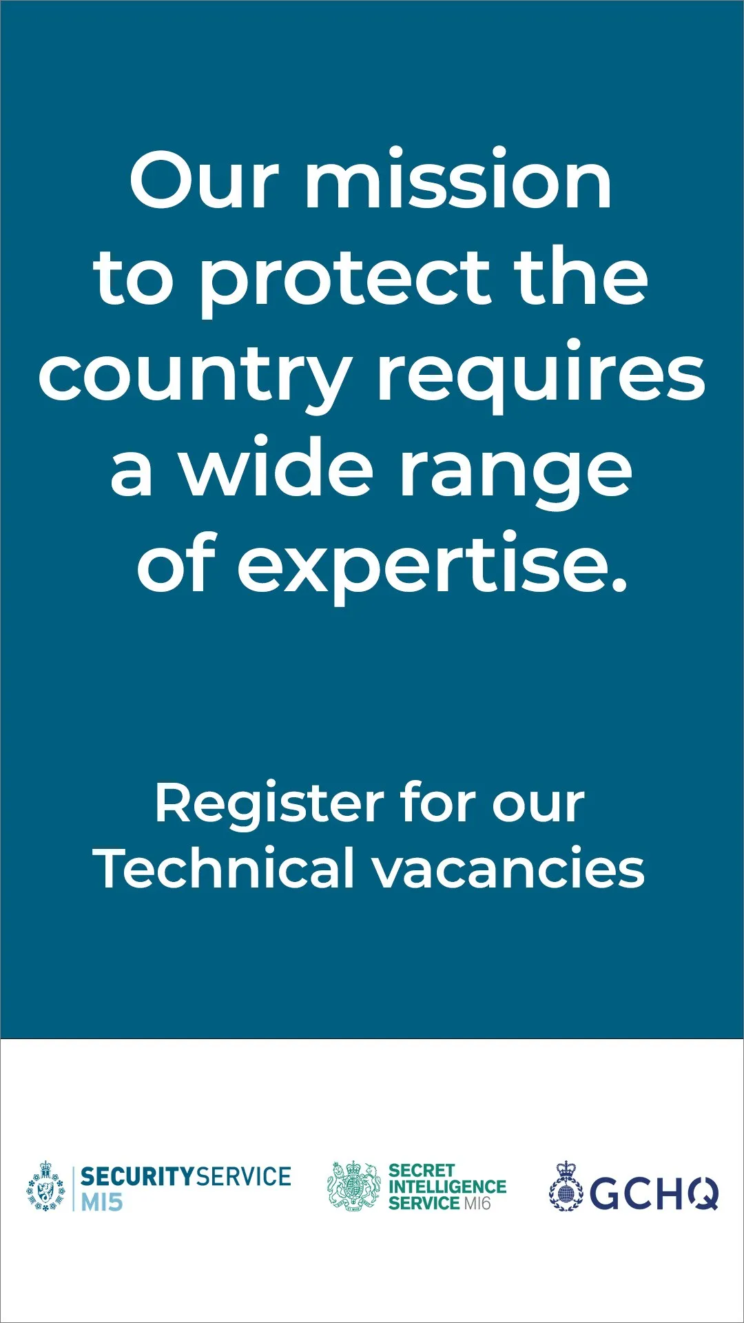 Hi, welcome to the MI5, MI6 & GCHQ stand. Please do check out our videos and blogs. If you have any questions around careers at the organisations and upcoming opportunities our reps would love to chat to you. Please do book a 1-2-1 chat and we hope you enjoy the festival.