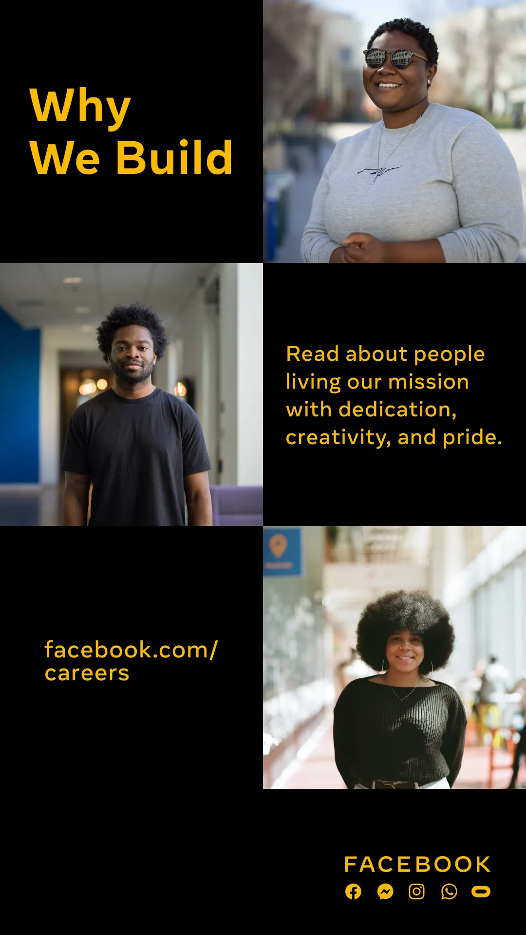 At Facebook, we are constantly iterating, solving problems and working together to connect people all over the world. That’s why it’s important that our workforce reflects the diversity of the people we serve. Hiring people with different backgrounds and points of view helps us make better decisions, build better products and create better experiences for everyone.