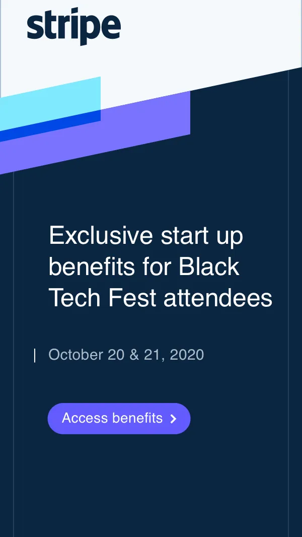 Welcome to Stripe! We are so pleased to be part of Black Tech Fest 2021. We want to get to know you, and also share some insights about Stripe and how you can be part of our exciting journey of growth. We will have a team of Stripes lined up to connect with and answer your questions. Please feel free to connect with a member of our team and drop by our digital booth where members will be live on October 20 and 21.